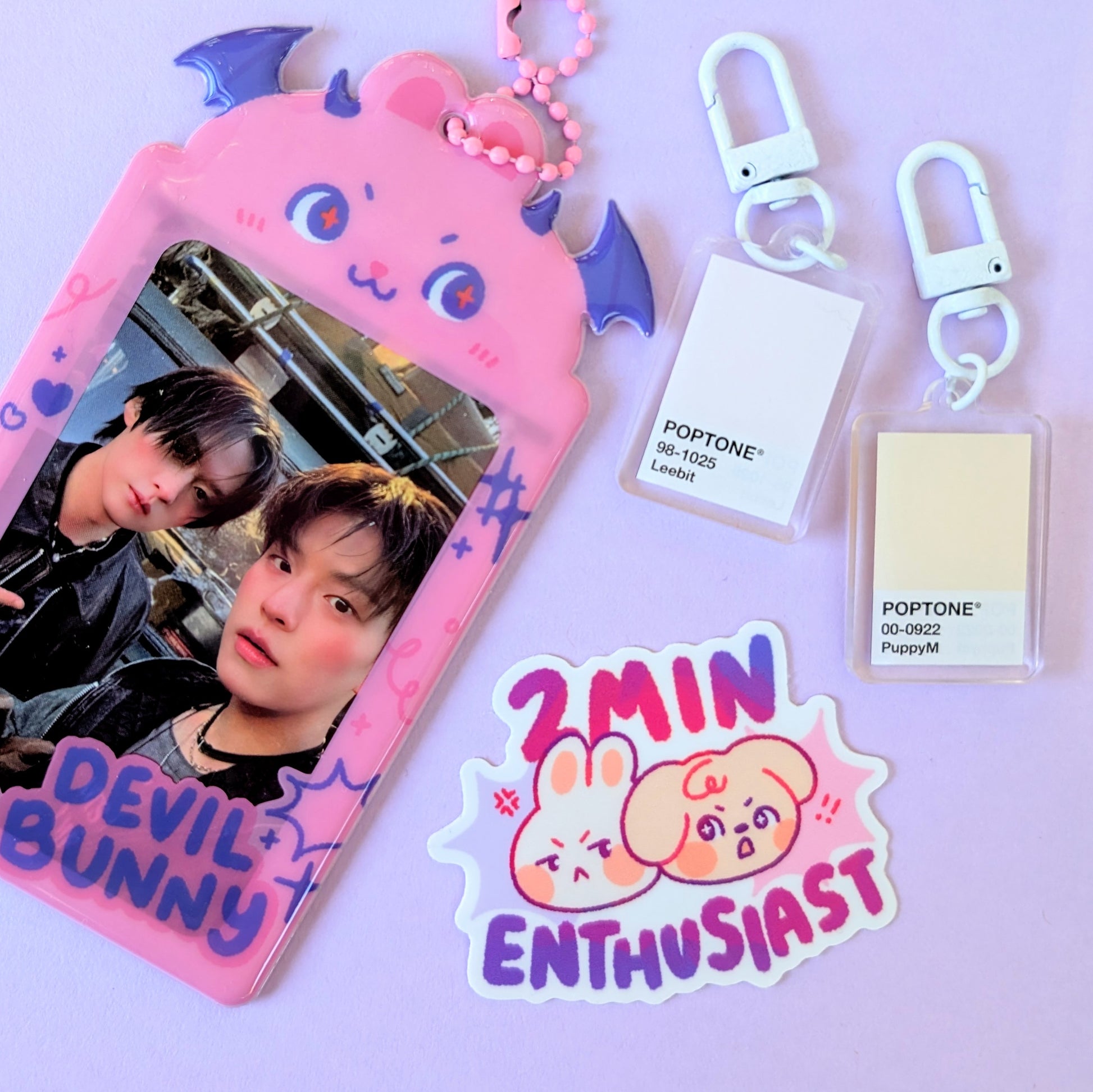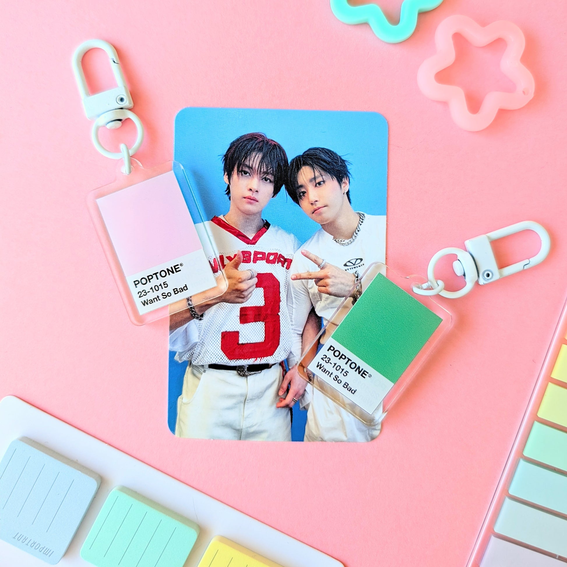 Simple and clean designs to show off your SKZ love. Build your own POPTONE palette with your favorite skzoo, or the bbunnycat-exclusive rainbow STAY design! Each keychain is double-sided, and the Want So Bad version is pink on one side and green on the other!