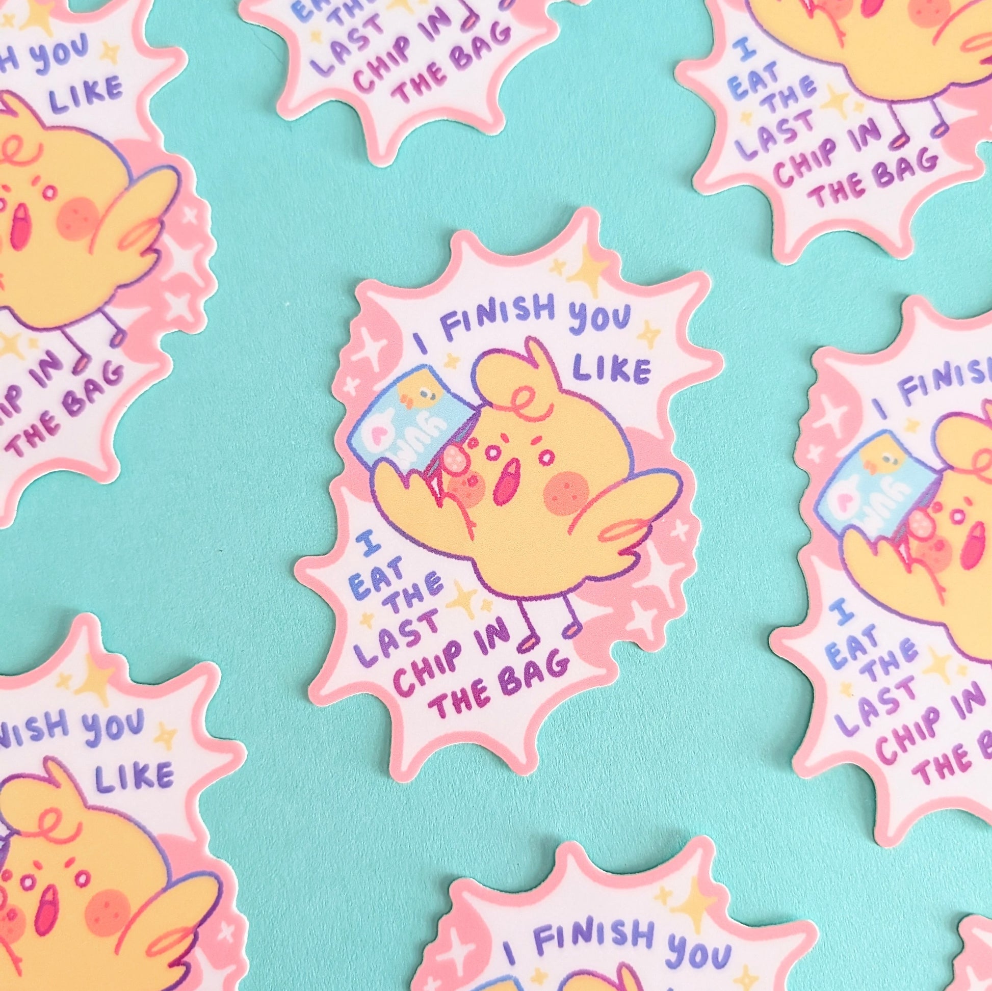 3in heavy-duty, waterproof matte vinyl sticker featuring bbokari devouring the haters like the last chip in the bag (one of his lines from the song truman)