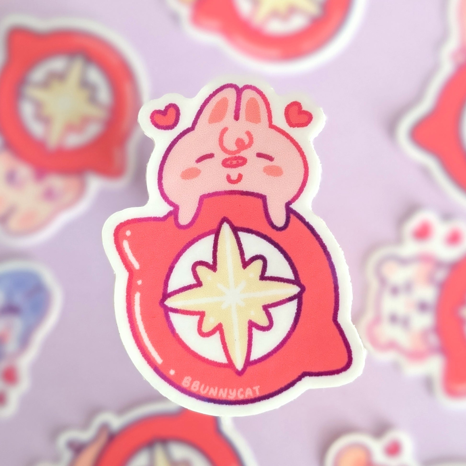 tiny little skzoo clinging to a compass! heavy-duty matte vinyl. each sticker is 2in long on its longest side. (foxiny is upside down because he's clumsy and fell off!)